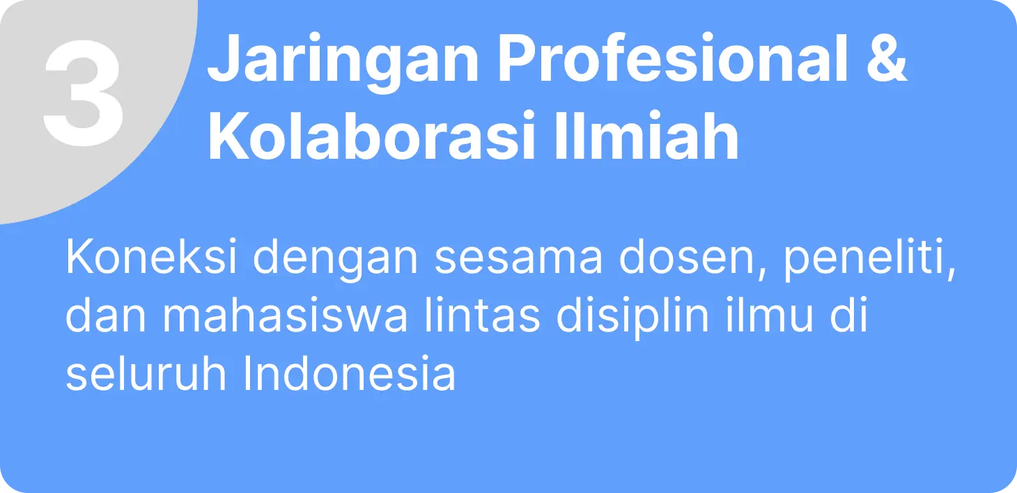 Wadah kolaboratif bagi dosen, mahasiswa, peneliti, dan praktisi yang menginspirasi dan memfasilitasi pertumbuhan akademik, inovasi, serta pengabdian masyarakat di Indonesia